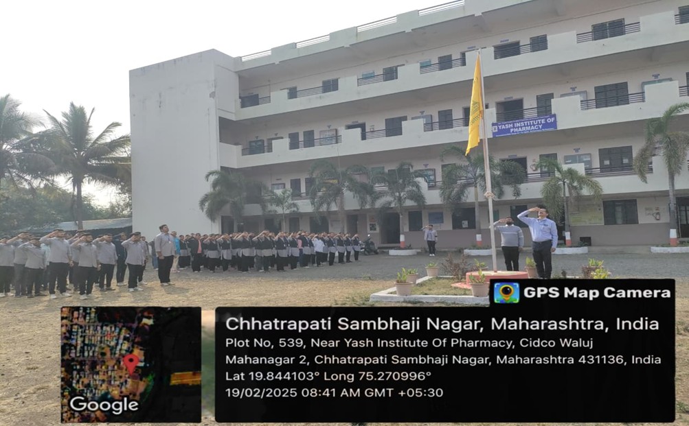 On 15th August 2025, Yash Institute of Pharmacy celebrated the 79th Independence Day at 8:00 AM with great patriotism. The flag hoisting was led by Chief Guest Subedar (Retd.) Takat Ganpati Prabhau of the Maratha Regiment Infantry, whose presence deeply inspired all attendees.