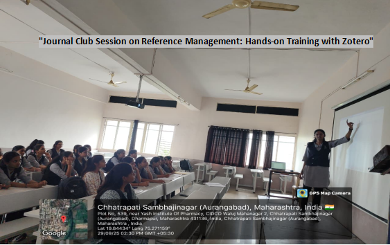 Yash institute of pharmacy organized journal club meeting on 29/09/2025 .The session began with an introduction to the importance of reference management tools in research. A step-by-step demonstration of Zotero was provided, covering its key features, installation, and use. Participants learned how to collect and organize references, attach PDFs and notes, and generate citations and bibliographies in various styles. Advanced features such as library syncing and group sharing were also demonstrated, highlighting Zotero’s efficiency in managing research references.