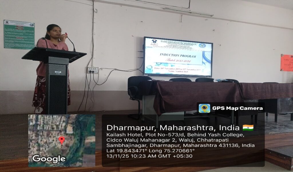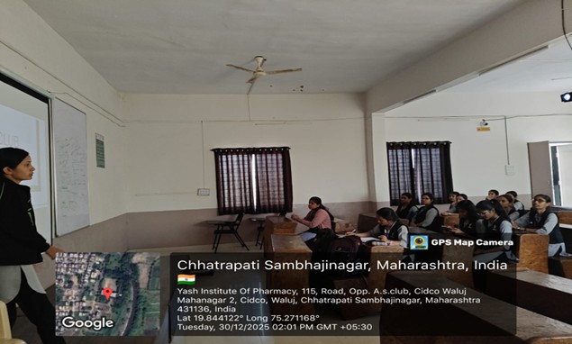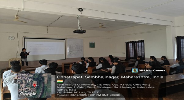 Yash Institute of Pharmacy organized an Orientation on Research Design, Data Collection, and Analysis on 13/10/2025. The session was conducted by Mrs. Dipali M. Kulkarni, who aimed to provide students with a clear understanding of research methodology, focusing on research design, systematic data collection, and effective data analysis. The session covered key topics such as types of research designs, formulation of research problems and hypotheses, sampling techniques, data reliability, and ethical research practices. Through interactive discussions and a Q&A session, students gained practical insights into preparing research proposals and conducting analytical studies. The orientation proved highly informative, enhancing students’ research skills, analytical thinking, and readiness for academic and project-based research work.