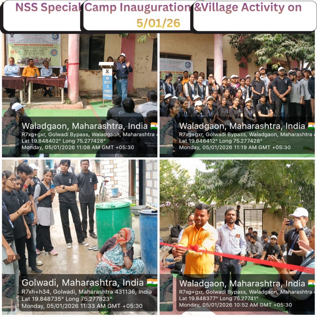 The NSS Unit of Yash Institute of Pharmacy, Chhatrapati Sambhajinagar conducted a Cleaning Drive at Karnapura on 27th September 2025 to promote cleanliness, hygiene, and community responsibility under the Swachh Bharat Abhiyan. The event, attended by Principal Dr. S. S. Angadi, Dr. Vinod Udawant, and Ms. Laveena Makhija, saw enthusiastic participation from students and staff. Principal Sir emphasized the importance of individual responsibility in maintaining cleanliness, while student Sakshi Chungade delivered an awareness speech on the harmful effects of excessive mobile usage. Supported by Seva Bharati – Devgiri Prant, the drive effectively raised awareness among students and locals, fostering a spirit of social responsibility and commitment to a cleaner, healthier community.