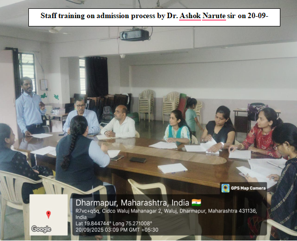 On September 20, 2025, a staff training session on the college admission process was conducted by Dr. Ashok Narute at Yash Institute of Pharmacy. The session aimed to equip faculty with the knowledge and skills to manage admissions efficiently and in a student-friendly manner. Key topics included admission guidelines, documentation, timelines, and the use of digital tools. The training improved staff coordination, reduced errors, enhanced communication with students and parents, and boosted confidence in handling high-volume admissions smoothly and professionally.